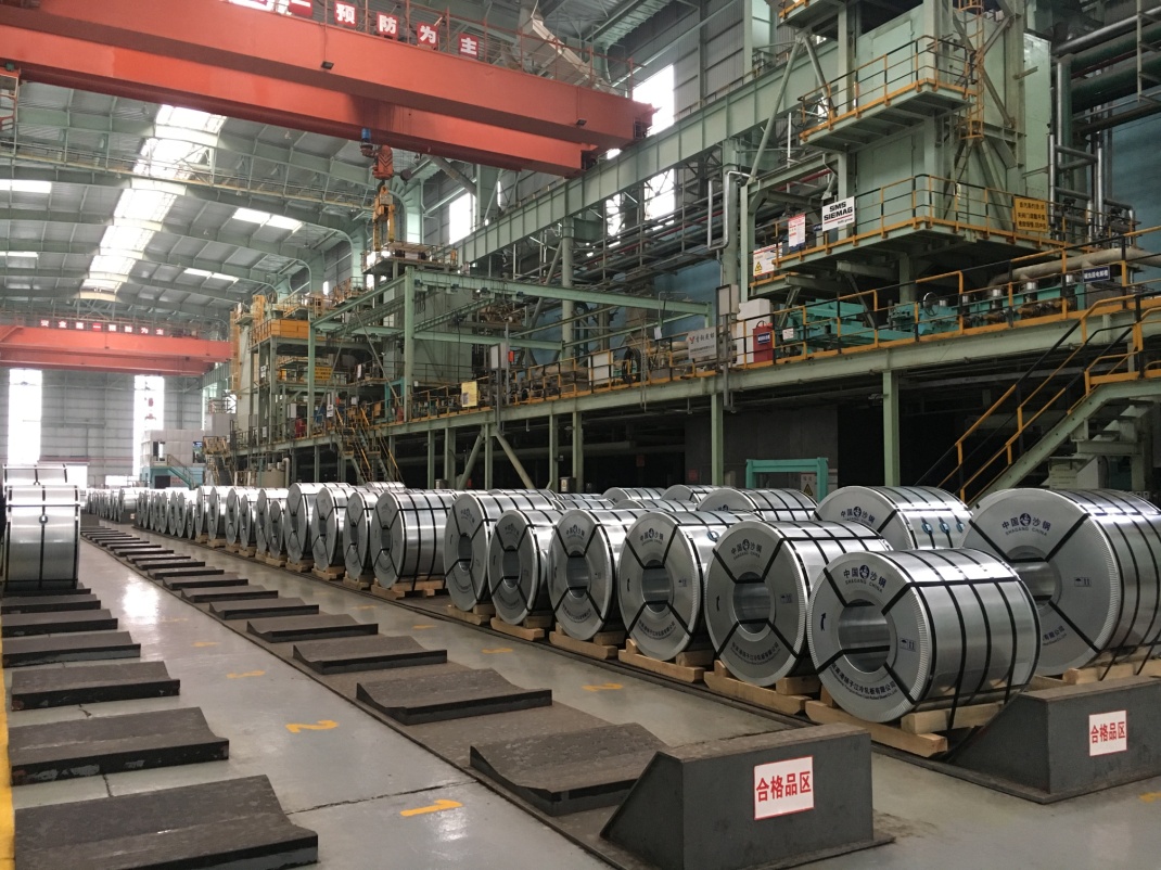 成品區(qū) 碼放得整整齊齊的鍍鋅卷成品,展現(xiàn)了沙鋼嚴(yán)謹(jǐn)?shù)墓ぷ骶瘛?